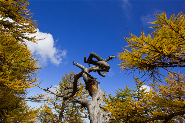 国庆假期,太白山海拔3511米的天圆地方是游客游览人气最旺的景点,站在这里不仅让游客能充分领略“一手牵长江,一手牵黄河”的独特魅力,还能欣赏轮番上演的雾凇、红叶、秋雪、云海、日出等美景,让游客大饱眼福。国庆当天,天圆地方景点出现晶莹剔透的雾凇景观,为太白山增添了瑰丽的景致。碧云天,黄叶地,秋色连波,波上寒烟翠。太白山的秋,是诗意和多彩的结合。站在天圆地方景点,放眼望去,壮观的云海翻腾,金色的山峰若隐若现,美不胜收。从这里沿着步道至上板寺,这条线路是太白山最美的赏秋地点,被誉为高山区的天宫盆景园。行走其间,两边的太白红杉枝条摇曳,姿容秀美,栩栩如生的凤凰松是红杉林里最靓丽的风景,诙谐生动的蛇松引的游人驻足欣赏。10月6日,天圆地方景点飘起了雪花,给秋意正浓的太白山又增添了些许的靓丽,让前来太白山赏秋的游客惊叹不已。